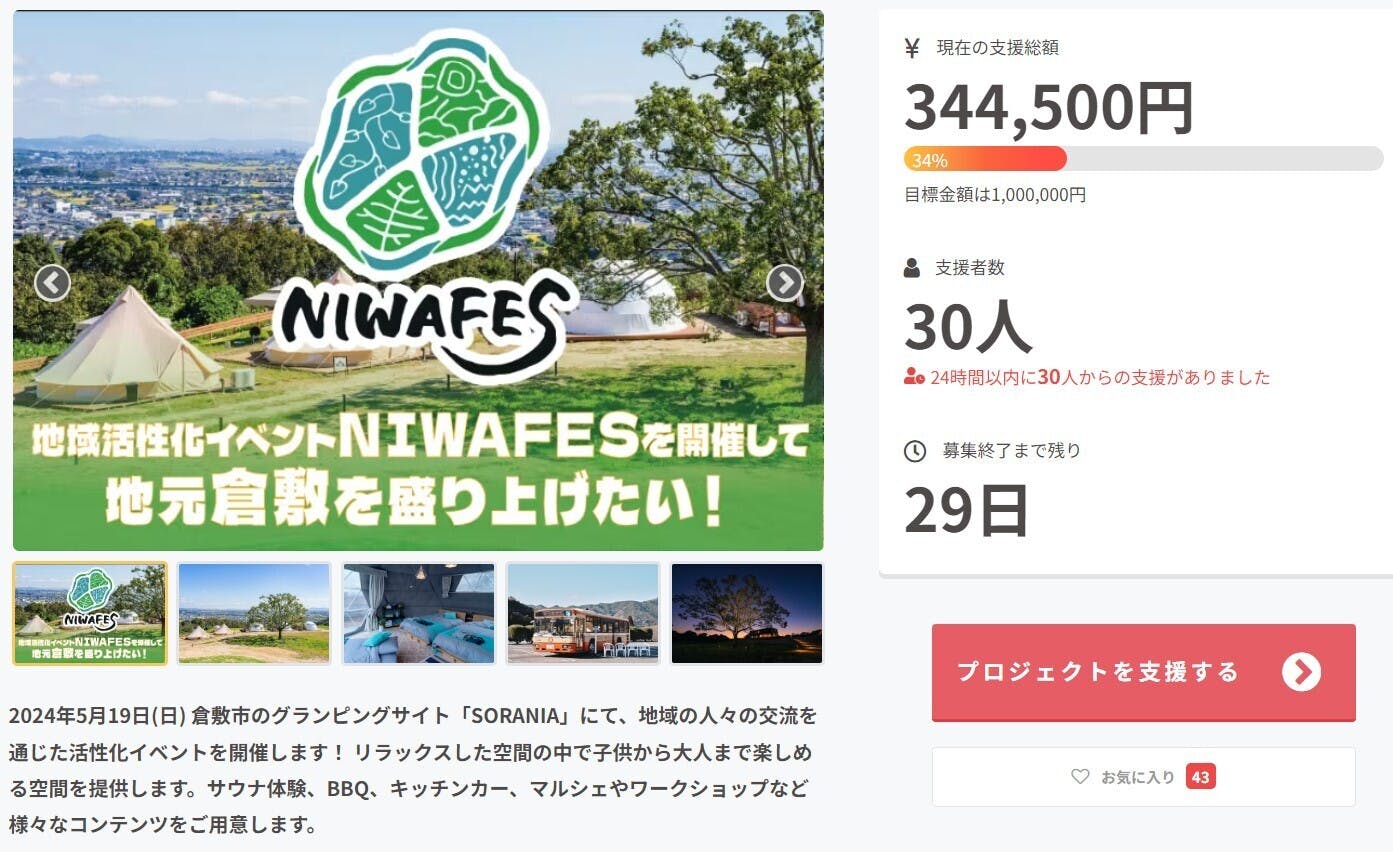 開始直後から続々とご支援をいただき、なんと開始から24時間で30名もの方からご支援をいただき目標金額の34%を達成することが出来ました。