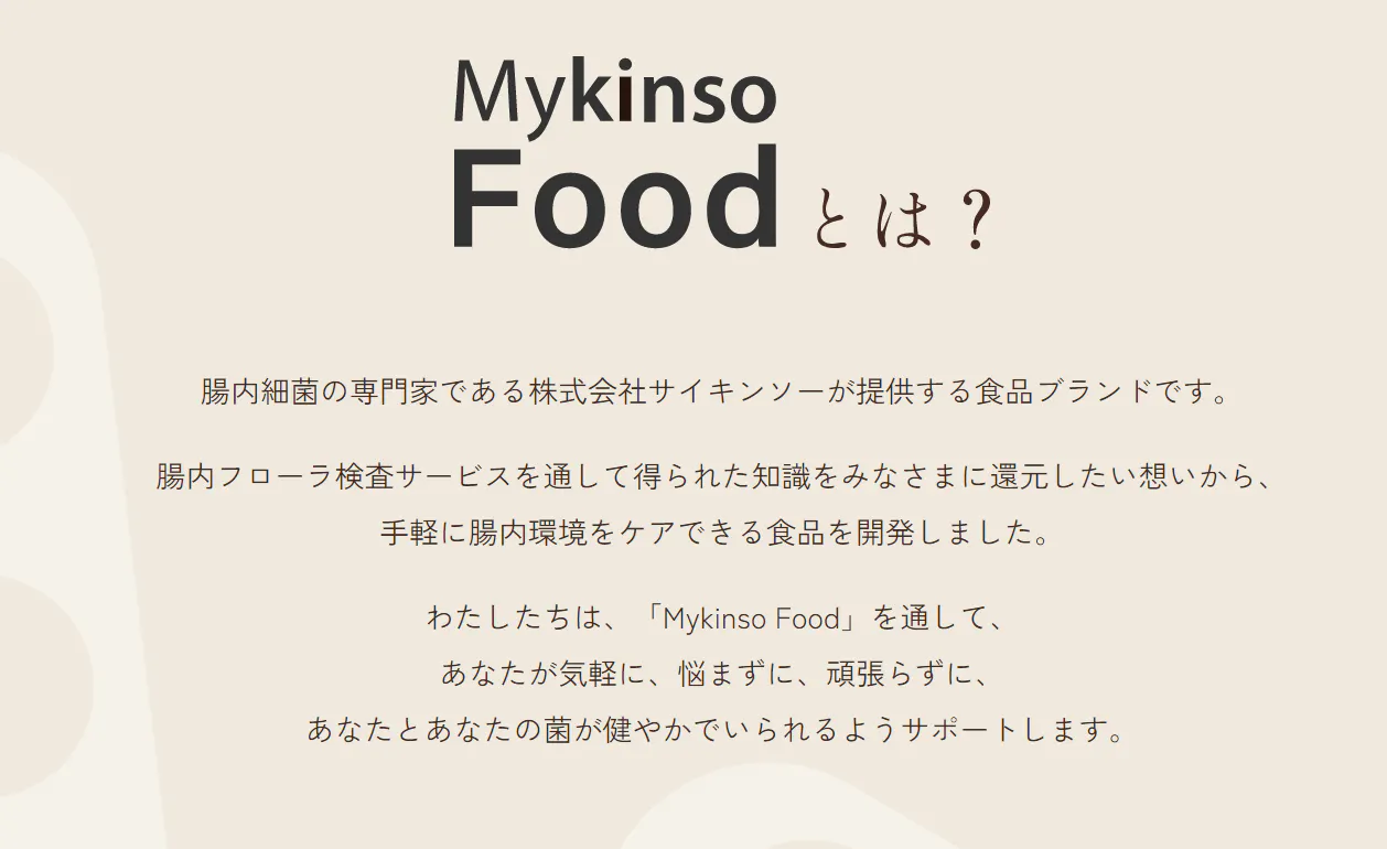 「Mykinso Food」は腸内細菌の専門家である株式会社サイキンソーが提供する食品ブランドです。