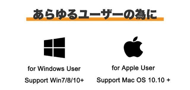 A: Windowsは7以降、MacはOSX(10.10)以降にそれぞれ対応しています。