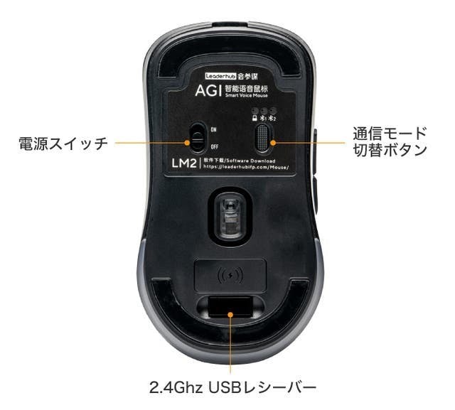 音声タイピングを行うには、マウスの左側面についている音声タイピングボタンを押しながらマウスに話しかけることで、音声タイピングを容易に可能にします。