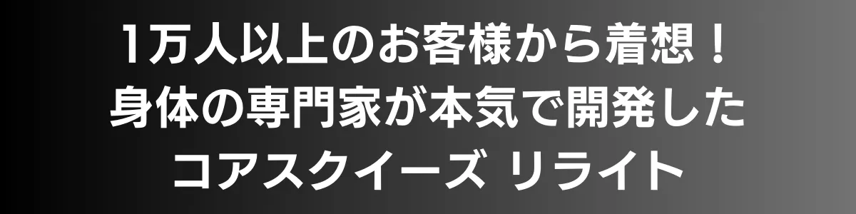 人気のフィットネスギア、コアスクイーズシリーズ初のストレッチ商品として、「身体のプロ」西区接骨院の協力のもと「コアスクイーズリライト」を共同開発しました。