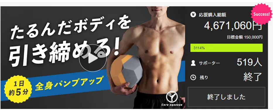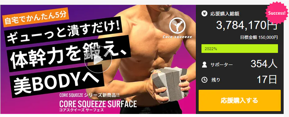 ご支援いただいた資金はコアスクイーズシリーズの広告宣伝費用や新商品開発費用に大切に使わせていただきます。