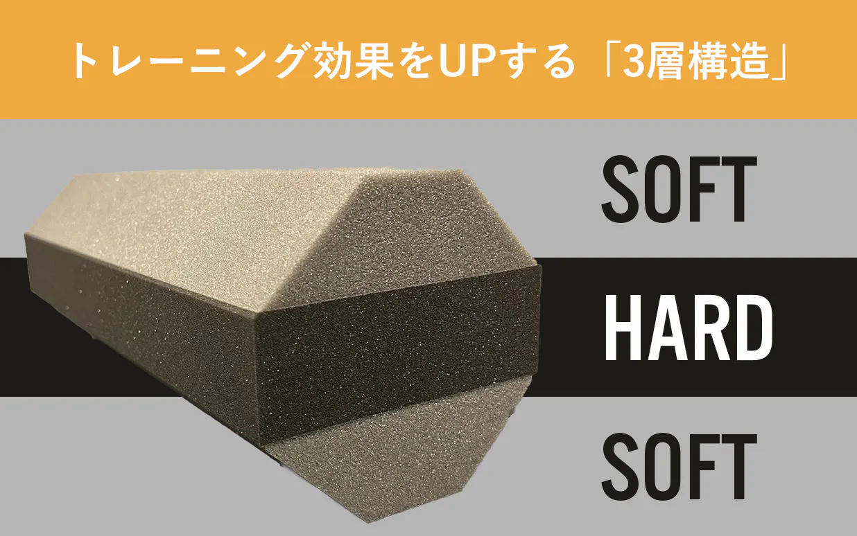 コアスクイーズリライトは「硬い・柔らかい・硬い」の3層で構成されます。
