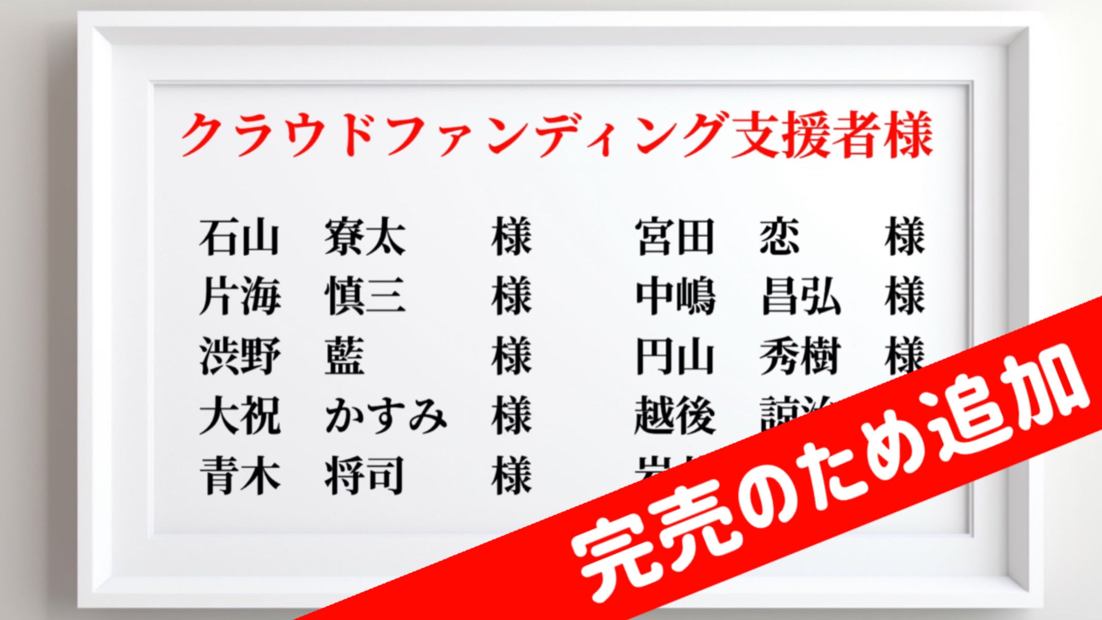 お陰様で目標金額を達成する事ができました。たくさんのご支援と応援メッセージありがとうございました。あとクラウドファンディング終了まで残り5日となりましたが、次なる高みを目指すためネクストゴールを目指す事に決めました。