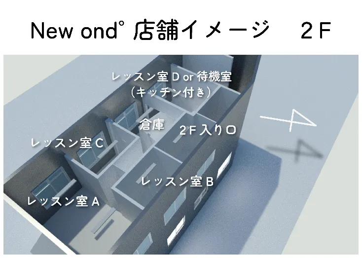 4月上旬 新店舗2階オープン(個人レッスン継続~新規入会募集開始)