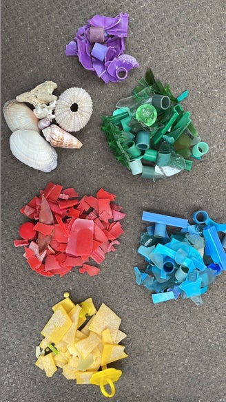 そこで記念にいくつか海ゴミを持ち帰って色分けしてみるとかなりカラフルで可愛いなと感じました。