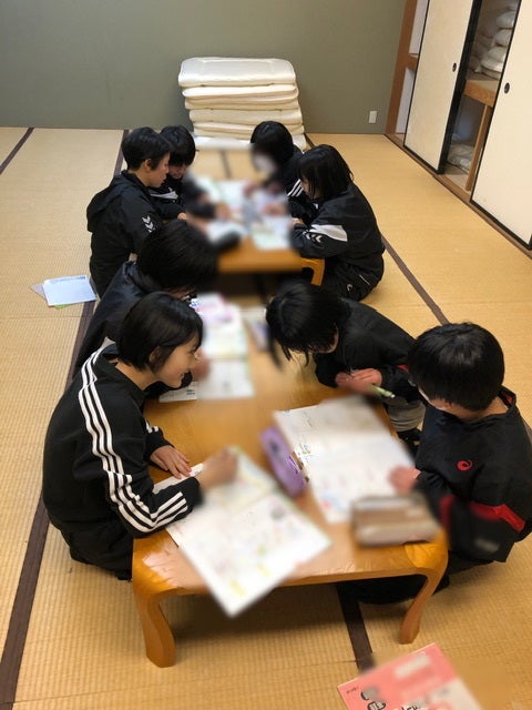 会場までの移動時間が片道2時間くらいかかるので、体育館近くで宿泊し、2日間の練習試合に参加し、夜はみんなで宿題をしていました。