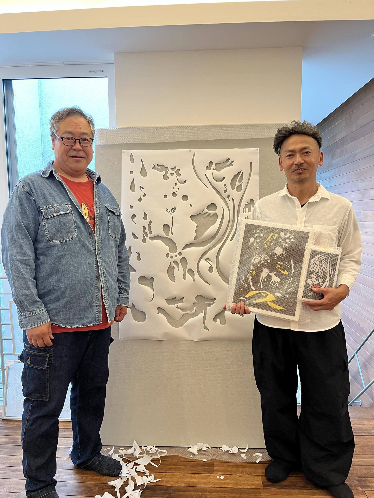 そして完成した切り絵の前でAさんと記念の1枚!