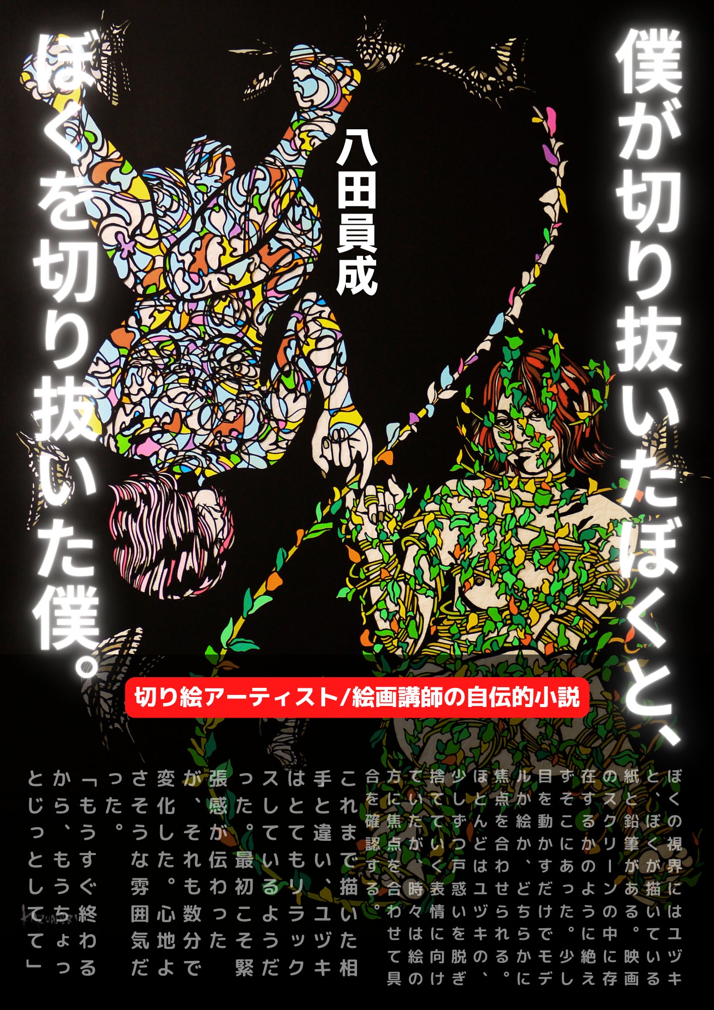 切り絵アーティストHachiによる自伝的小説「僕が切り抜いたぼくと、ぼくを切り抜いた僕。」中島らもさんの自伝「僕に踏まれた町と、僕が踏まれた町」をもじったタイトルです。切り絵アーティストHachiは小説などいっさい書いたことはなく、ずぶの素人です。2023年に自伝コンクールの広告を目にし、なんとなく「書いてみよう」と、その日から締め切りまでの約ひと月で書き上げたもの。400字詰め原稿用紙にして530枚、19万文字。勢いのみで書いた、勢いだけが取柄の問題作。。。結果は落選(はしにもぼうにも、でした)でしたが、十人ほど周囲の人々に読んで頂き、助言を頂いた末、加筆・訂正しました。特にどこへ持ち込むわけでもありませんでしたが。でも書き上げたときは「映画化されて、菅田将暉さん主演で、詐欺師の役は山田孝之さんで・・・」などと配役もきっちり考えてました(笑)リターン品は、この小説を掲載した非公開サイトのURLをお送りいたします!