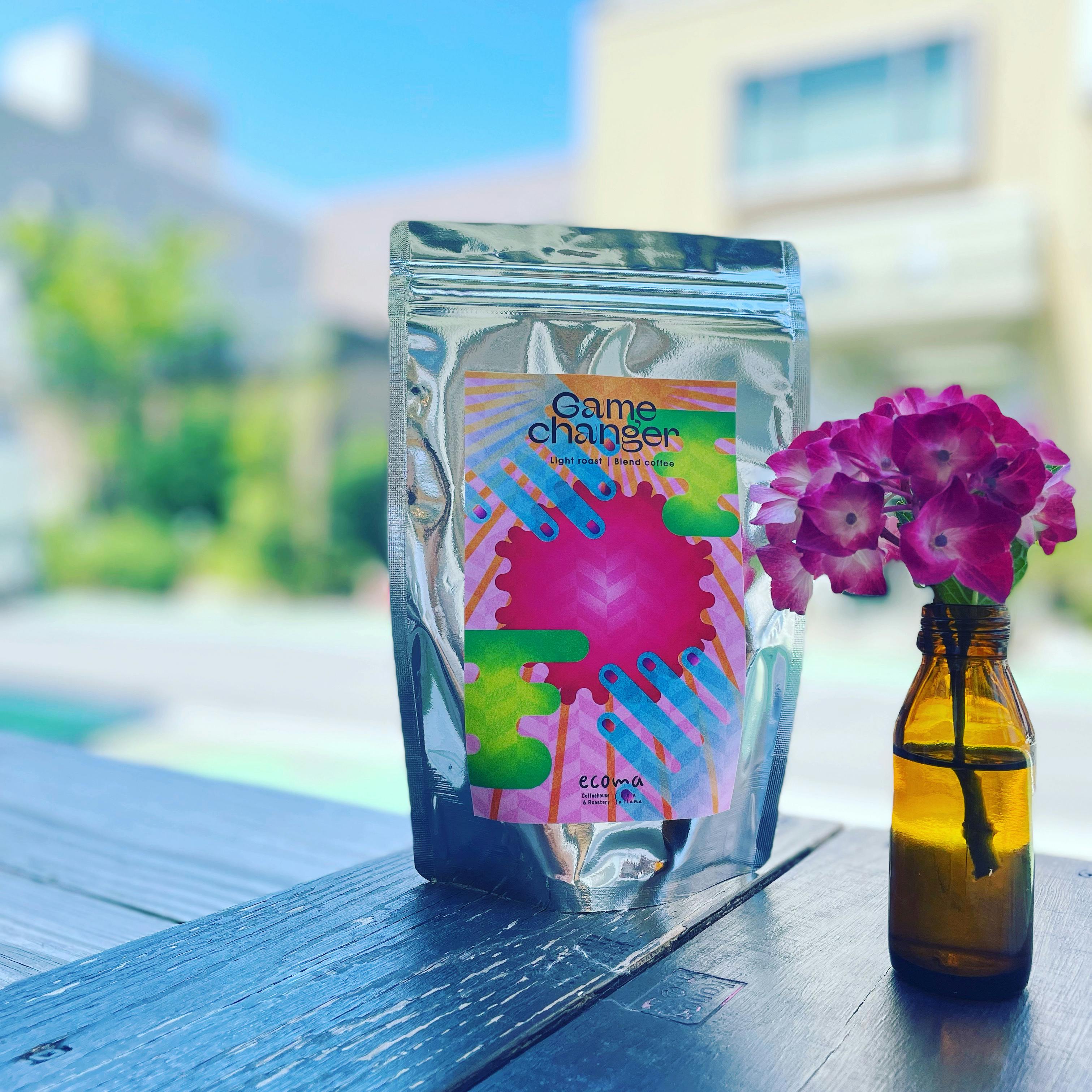 ecoma coffeeの5周年ブレンド”Game Changer”のラベルデザインを担当していただいた草加在住のグラフィックデザイナーさんです。今回のロゴデザインも制作いただいています。