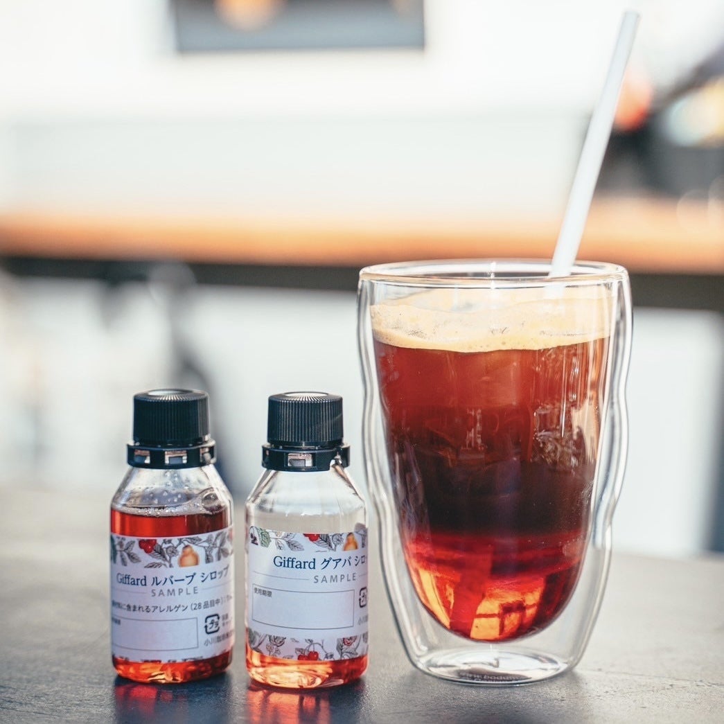 GIFFARDの特徴は材料にこだわり、砂糖にはてんさい糖を使用することでベタベタとした甘さにならず、甘さがすっと切れるので飲んでいて疲れません。そして、香りがとても高く、飲み込んでからの鼻から抜けるフレーバーの広がりが豊かで、長く続きます。例えば、コーヒーとシロップを混ぜたドリンクを作るとき、もう少し香りを立たせたいけど、これ以上シロップを入れてしまうと、甘さが強くなりコーヒーの良さが消されてしまうといったことがあります。けれどGIFFARDは甘さの切れがよく、フレーバーが豊かなので、ドリンクのトータルバランスが取りやすいなという感じがしました。