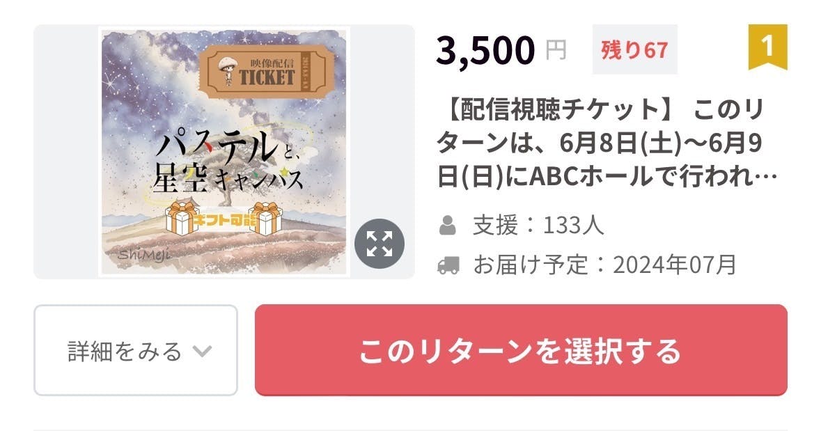次はこのプロジェクト終了まで全力で務め、配信チケットの目標販売枚数200枚達成を目指します。