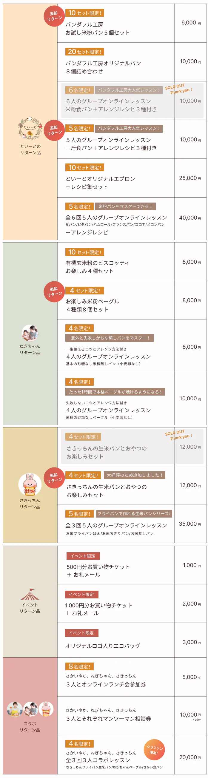 2024年 4月 リターン品順次配送対応