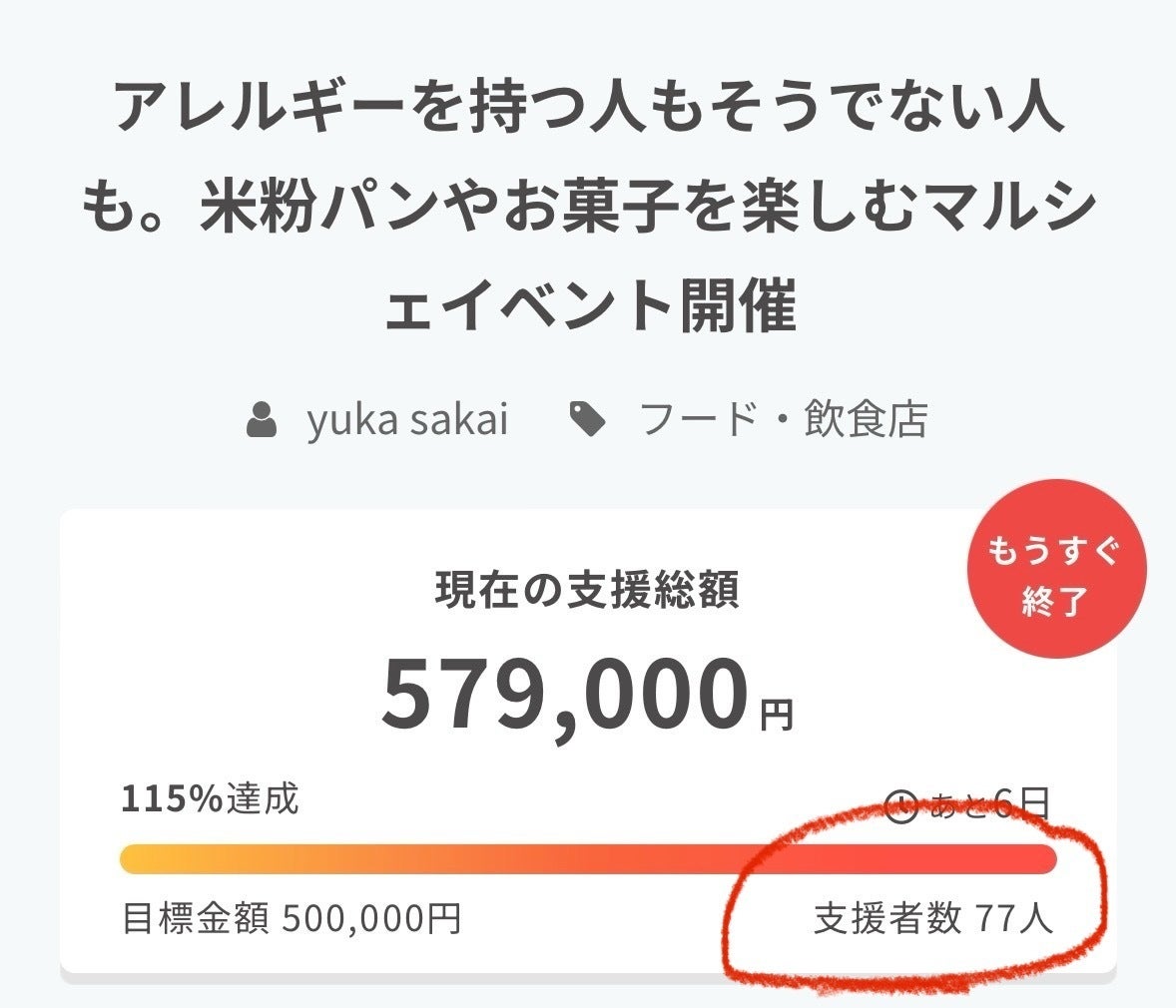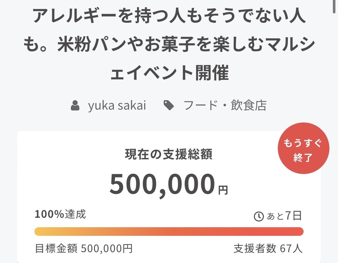 プロジェクト終了まで残り8日という日に、目標に掲げていた【50万円】を達成することができました**