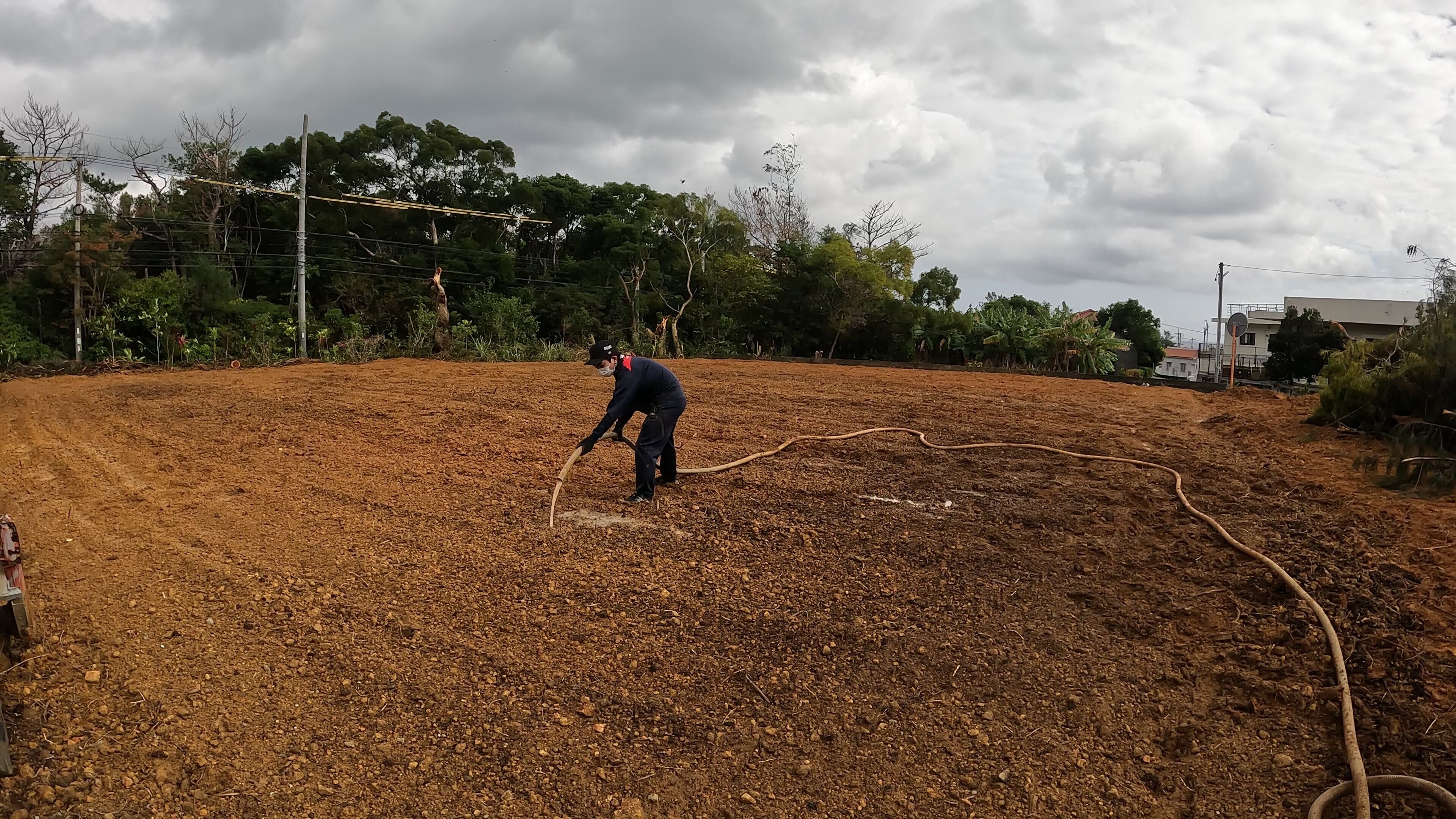 約2ヵ月で雑木林だった約900坪の敷地を整地できました!今後は、研究用のラボや雨天時でも利用できるBBQ施設(リターン用)を設置していく計画です。ただ、資金は無いので全てDIYです!そして、最新情報としては、県内の酒造メーカー様の協力も得て、圃場の害虫を駆除するための酒粕を散布して、💦