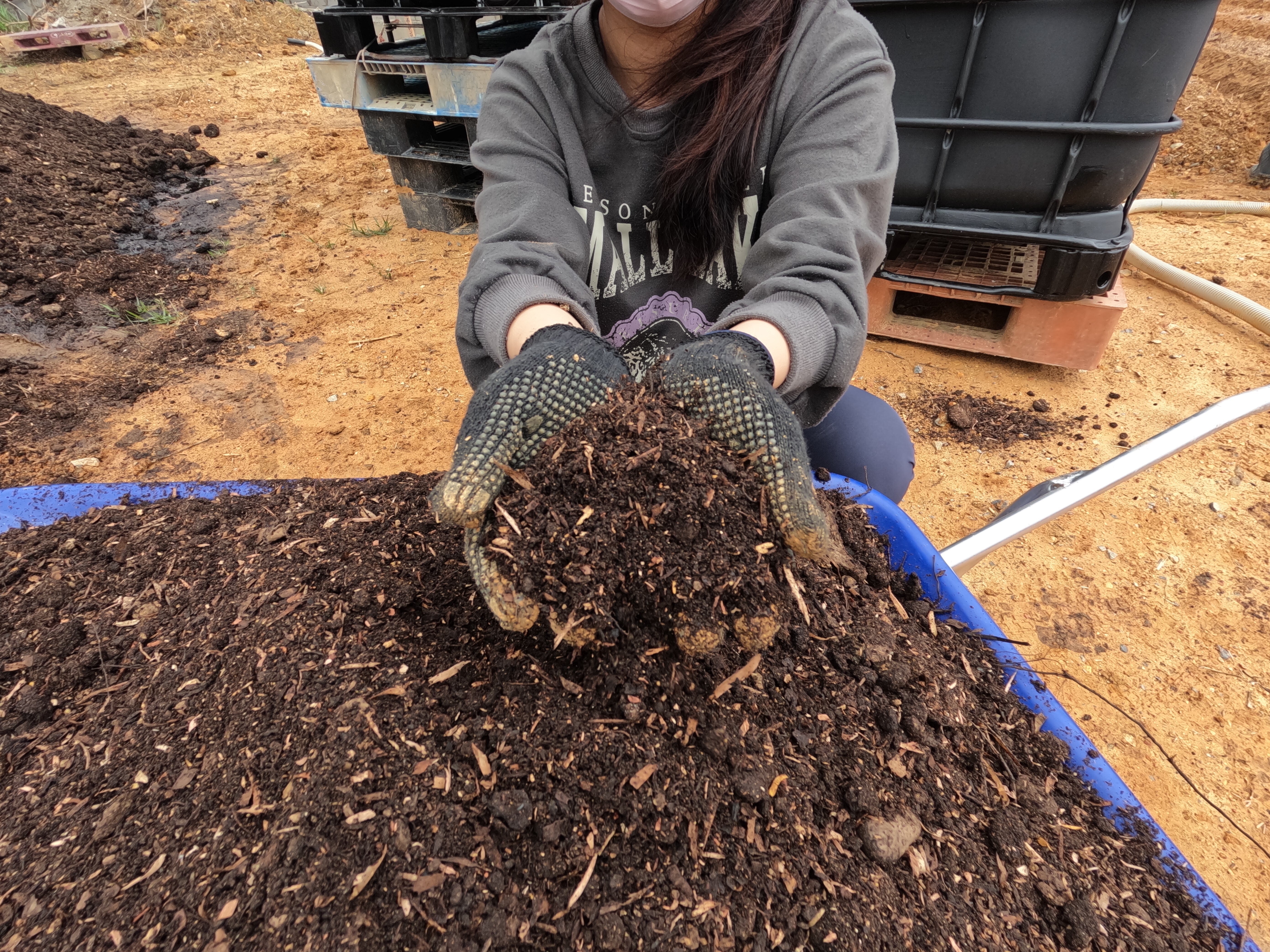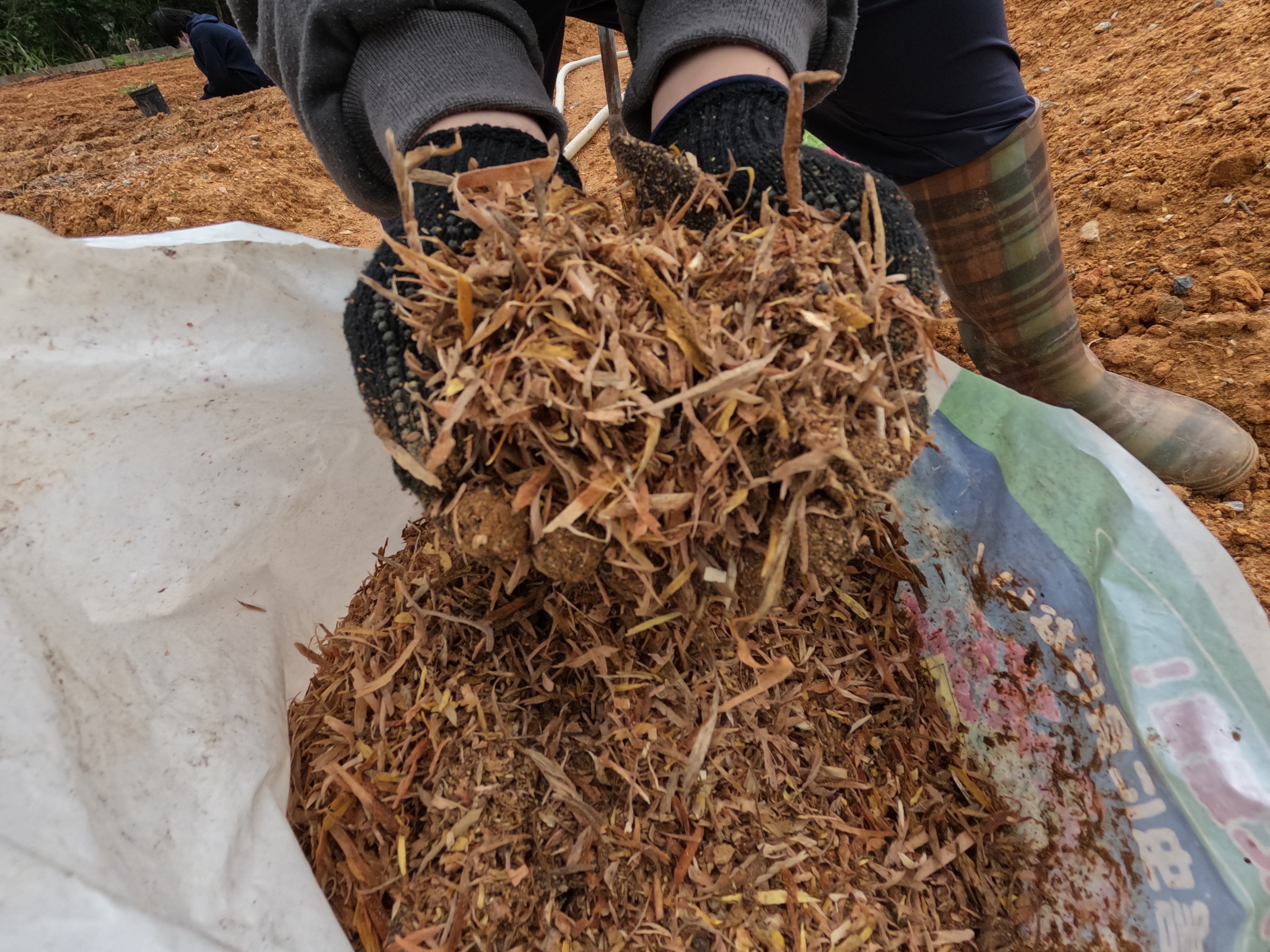 自家製堆肥と有機物を混ぜ込んで、、、、、💦💦💦💦💦
