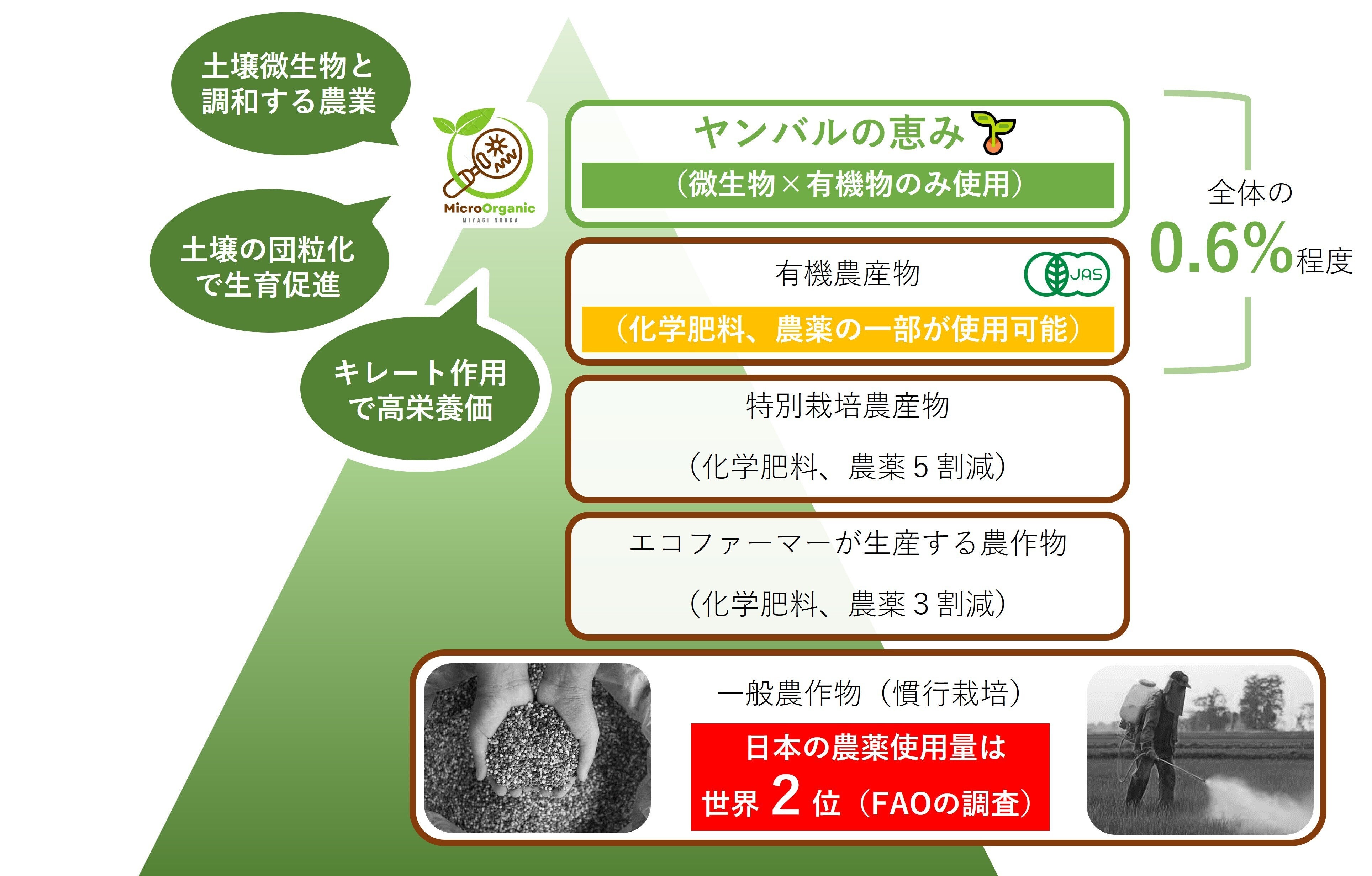 (3)有機農業の面積割合を25%(現状0.6%程度)に拡大