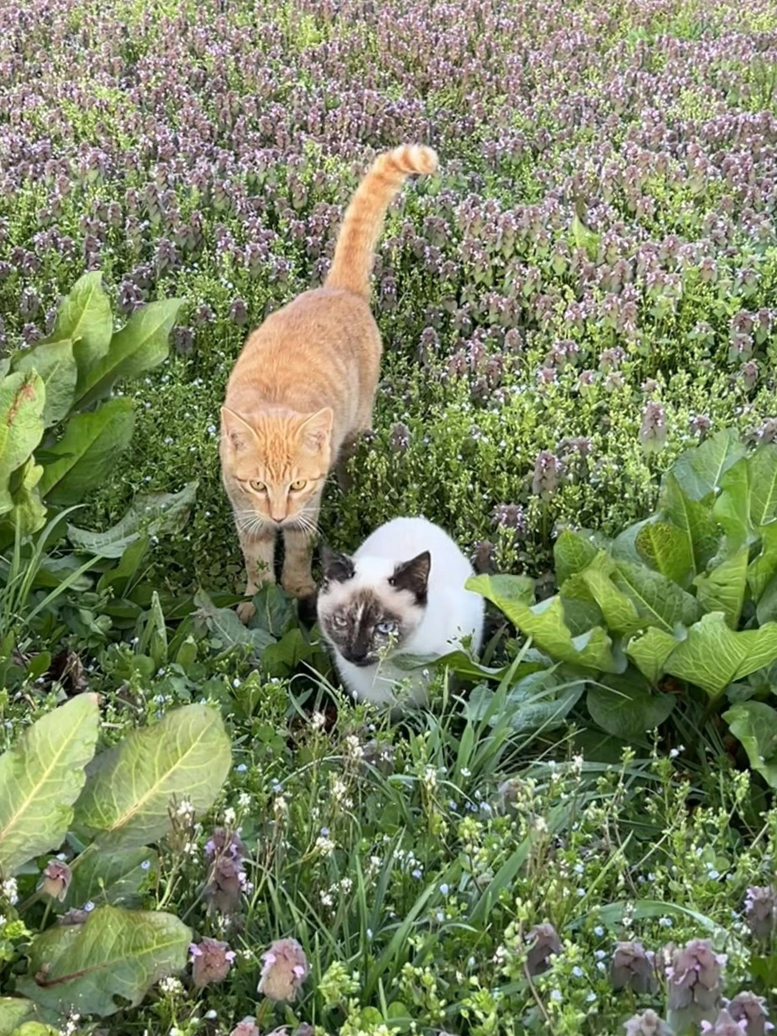 暖かい日差しの中元気に遊ぶ猫達がとてもかわいいです。