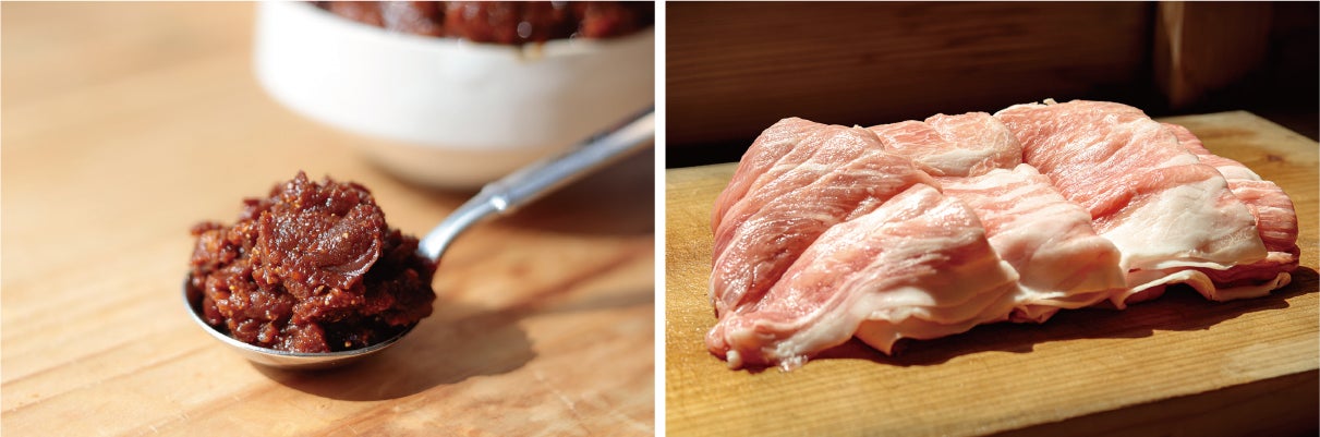地元のお店である“肉のかた山”の豚肉、”浅野や”の味噌を使用。