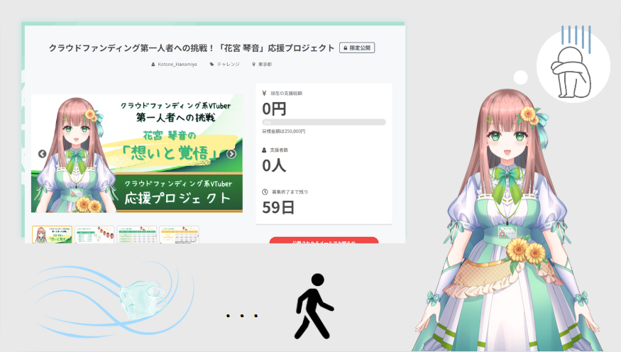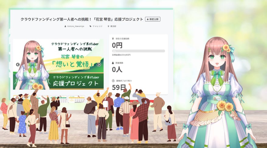 クラウドファンディング初日に初配信を行い、VTuberデビューする"花宮 琴音(はなみや ことね)"と申します!!