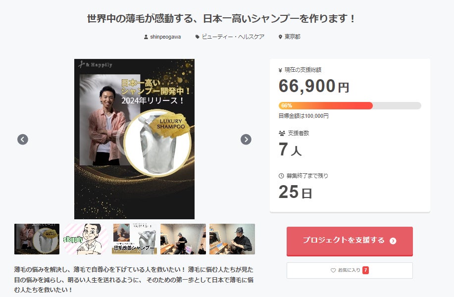 世界中の薄毛が感動する、日本一高いシャンプーを作ります!(shinpeogawa様)