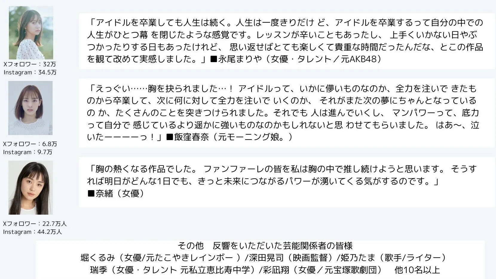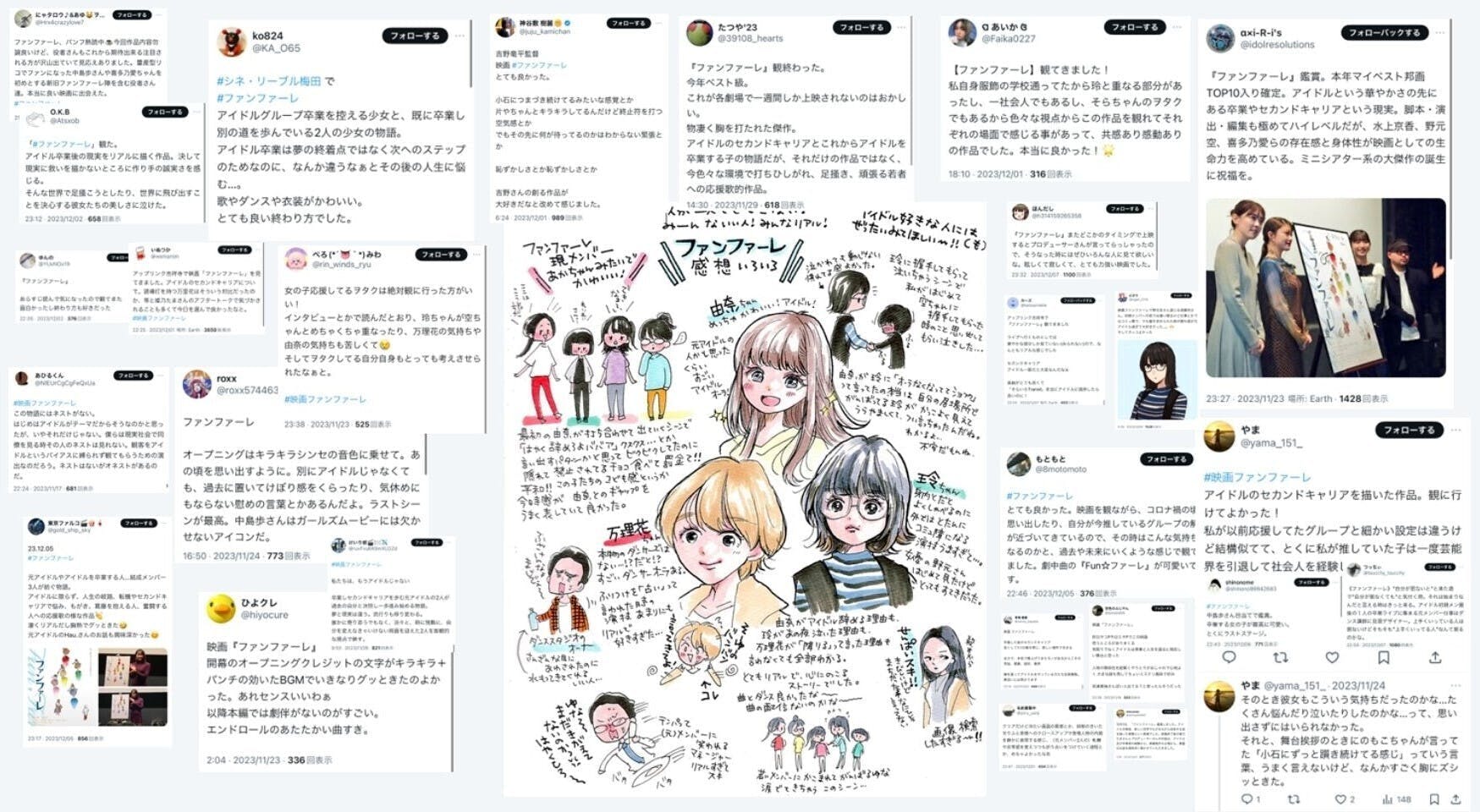 2023年11月17日に全国ロードショーの際にはSNSでも多くの元アイドル、著名人の方に反響の声をいただきました。