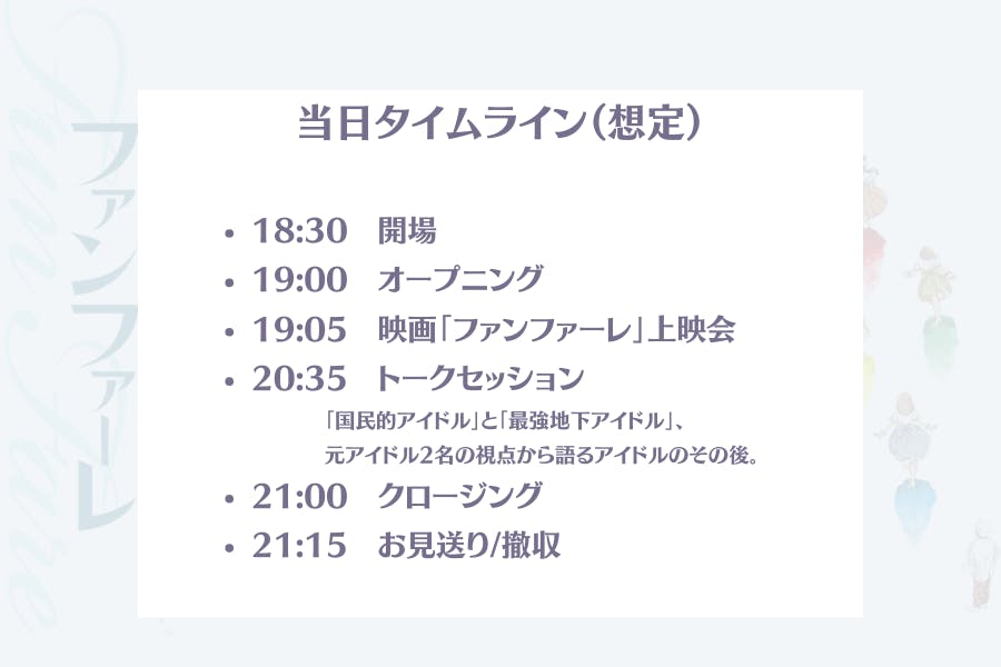今回はアイドルのセカンドキャリア支援を行う株式会社ツギステ協力のもと上映会とトークセッションイベントを開催致します。