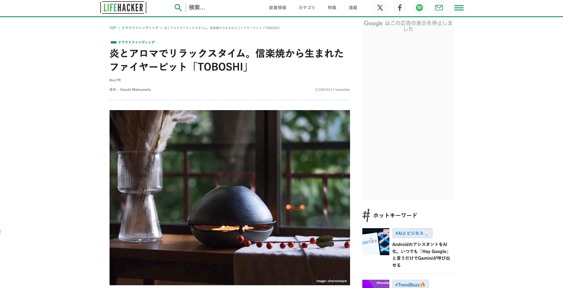 "灯" がWebメディア「lifehacker」にて掲載されました!