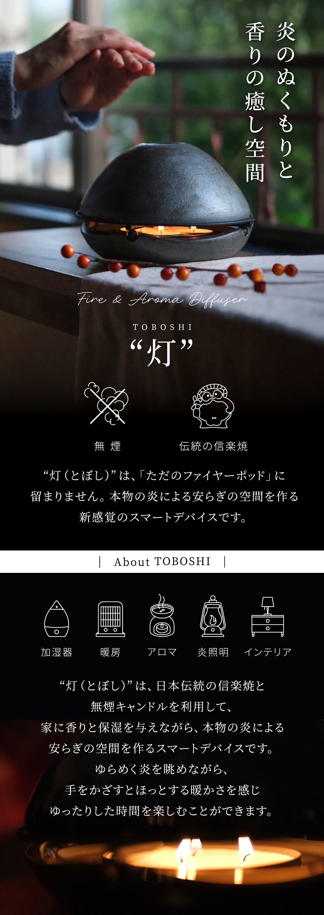 プロジェクト終了まで【残り10時間】「炎のゆらぎと香りで1日を締め括る癒し時間。1台5役スマートデバイスTOBOSHI」