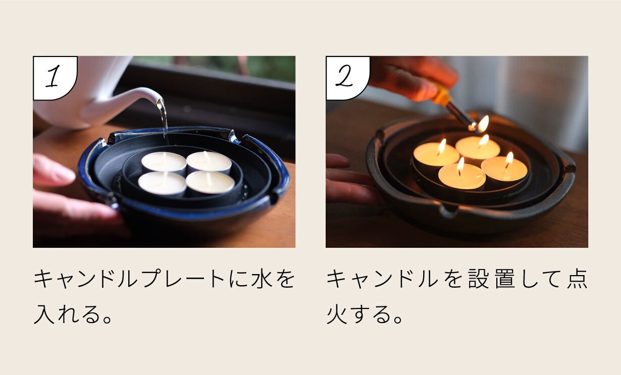 ・使用後はキャンドルプレートに残った水を捨てて、完全に拭きあげて乾燥させてから保管してください。