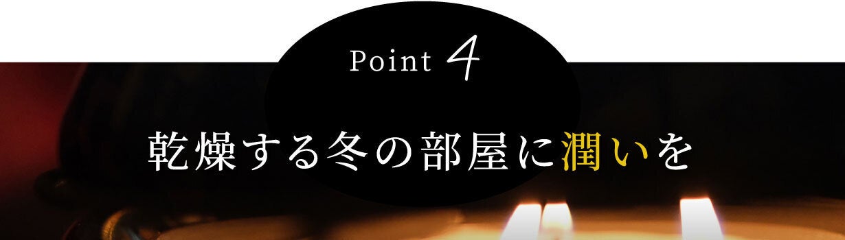 キャンドルプレートに入れた水が蒸気となって部屋へ放出される為、加湿器の代わりとしても機能します。加湿させる為に水を入れるのは億劫ですが、“灯”は炎の癒し空間を求めて使うと自ずと部屋が加湿されていくので1度で2度おいしく部屋の乾燥を持続的に潤してくれます。