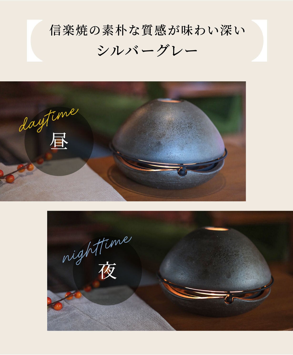 開発者は、ある寒い冬に、突然の停電をした経験がありました。そのときに、家にあるもので簡易的なライトを作ることができないか調べていたところ、植木鉢でキャンドルポットを作れることを知りました。実際に試してみると、手をかざしたときのほんのりした暖かさと間接照明の機能が、突然の暗闇で気持ちが落ち込んでいた私と家族みんなの心に、ほっとぬくもりを与えてくれました。この構造を用いて、伝統ある信楽焼で作ってみてはどうか。と考え、以前にお世話になったことのあるヤマ庄陶器さんへ相談し、今回のプロダクト開発が進みました。