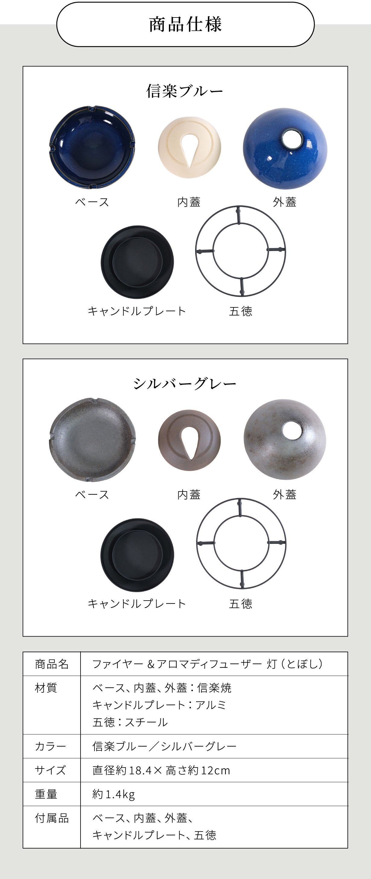 表面のドームは信楽焼で出来ています。信楽焼の特徴は素朴な質感と土の風合いが上手く共鳴し温かみのある仕上がりになります。エコな暖房器具や炎の癒し空間を提供する“灯”では、この信楽焼の温かみがマッチしており、インテリアとしての総合的な完成度を高めてくれています。