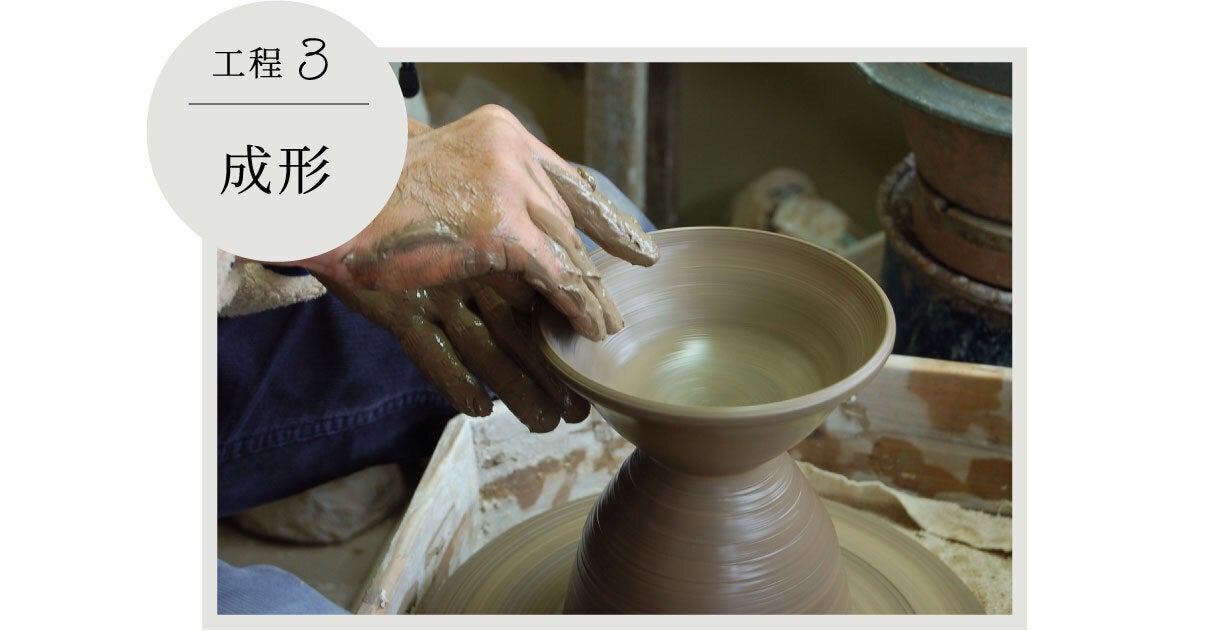 陶工たちにより、商品の形をつくります。焼成後の出来上がりを思い浮かべながら、その時の土の性質、気温、湿度を加味しながら進めていきます。