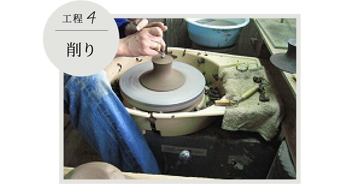 成形後、ある程度乾燥させ削り作業に入ります。商品の形を整える作業です。