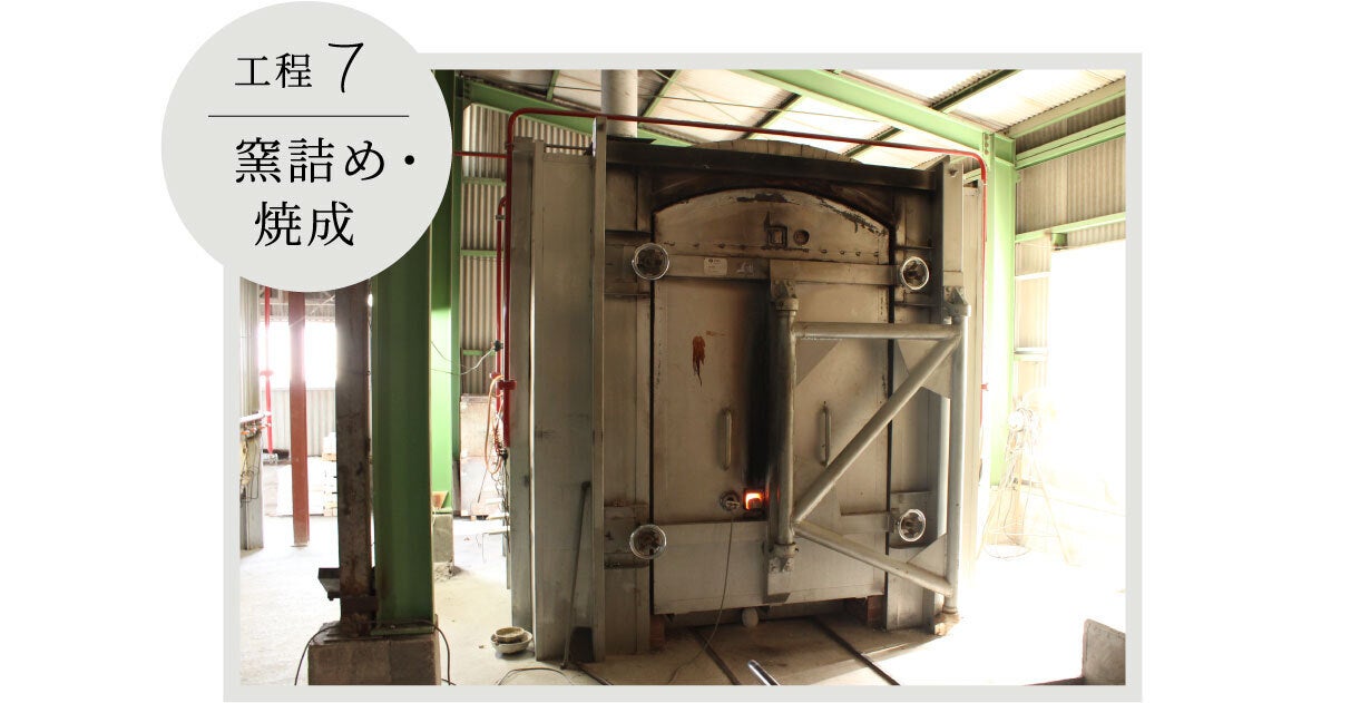 1200度以上の温度で焼成します。さまざまな環境の変化などで、焼き上がりが左右されます。昔は登り窯などの薪を使った焼成方法が主流でしたが、現代は電気やガスを使う窯で焼成します。炎が昔と比べて、安定しているのですが、不安と期待の作業でもあります。
