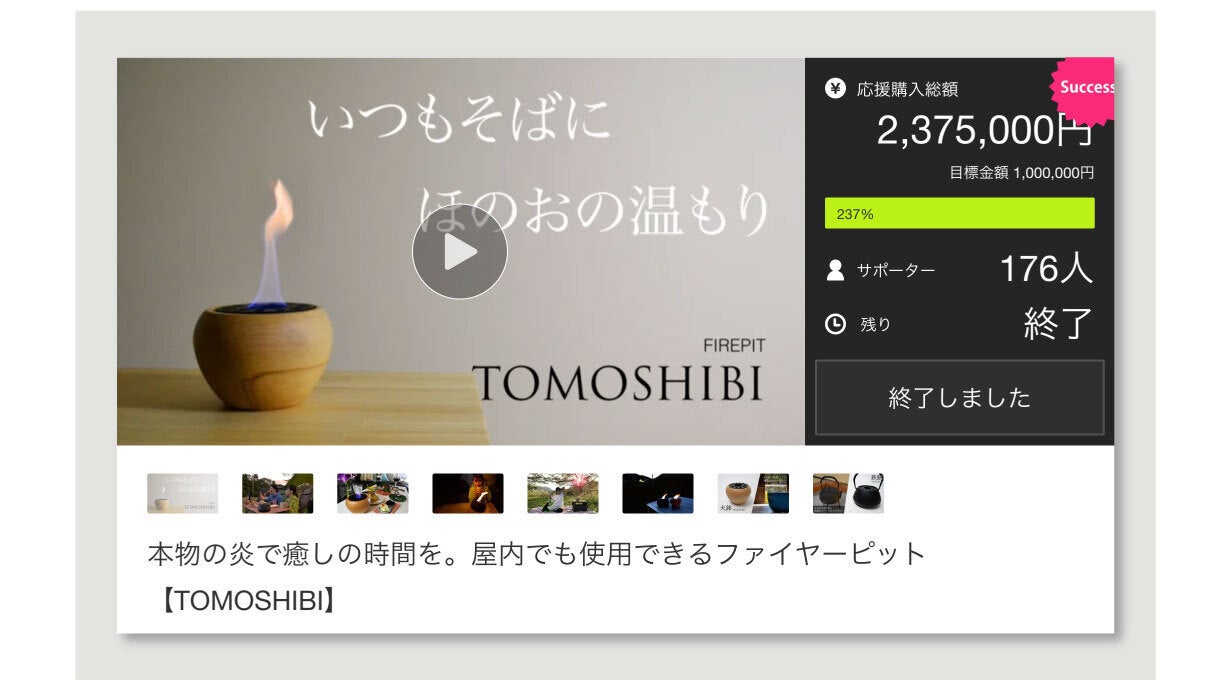 2024/04/12 12:09皆さま、こんにちは。★プロジェクト終了まで、残すところあと「10時間」となりました★炎のゆらぎと香りで1日を締め括る癒し時間。↓↓ 1台5役スマートデバイス【TOBOSHI】プロジェクトページはこちら↓↓https://camp-fire.jp/projects/view/742322ご検討中の方は、プロジェクト終了日が近づいてまいりましたので、ご注意くださいませ。応援購入を頂きました方、大変お待たせしておりますが、商品発送まで今しばらくお待ちくださいませ。それでは、引き続き、よろしくお願いいたします。 もっと見る