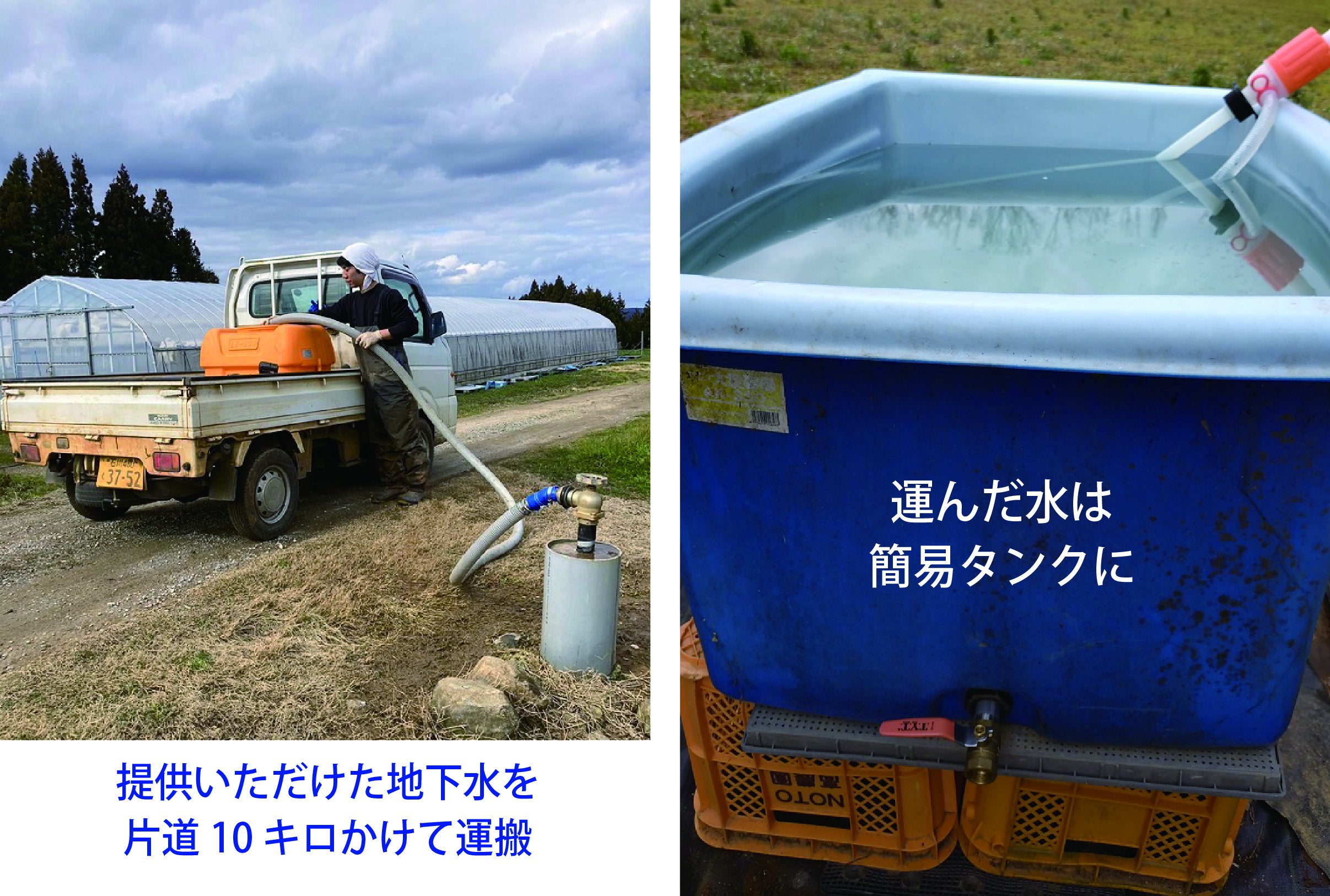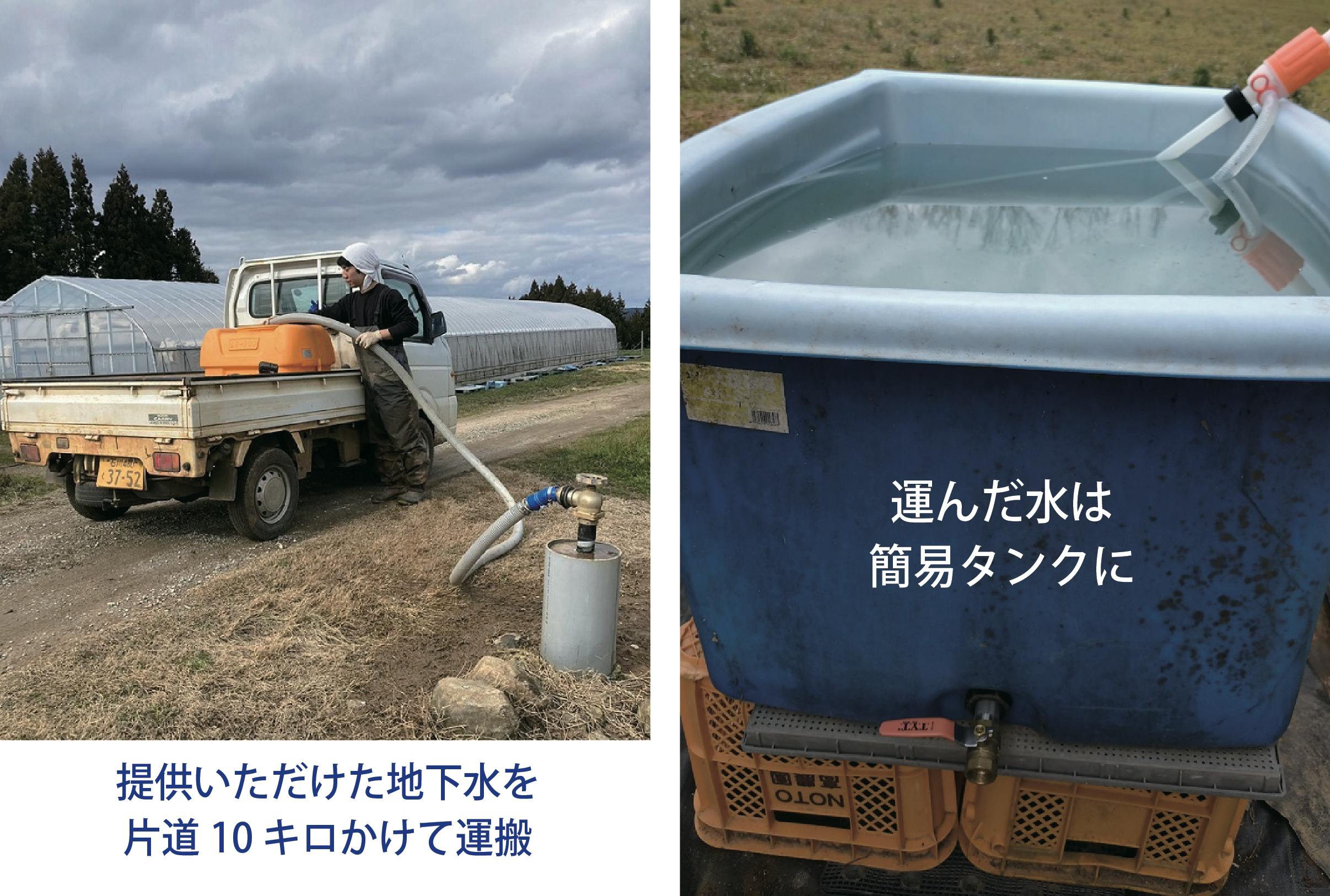 ※簡易タンクに地下水を毎日何度も軽トラックで往復して汲んで運ぶ作業は過酷です。