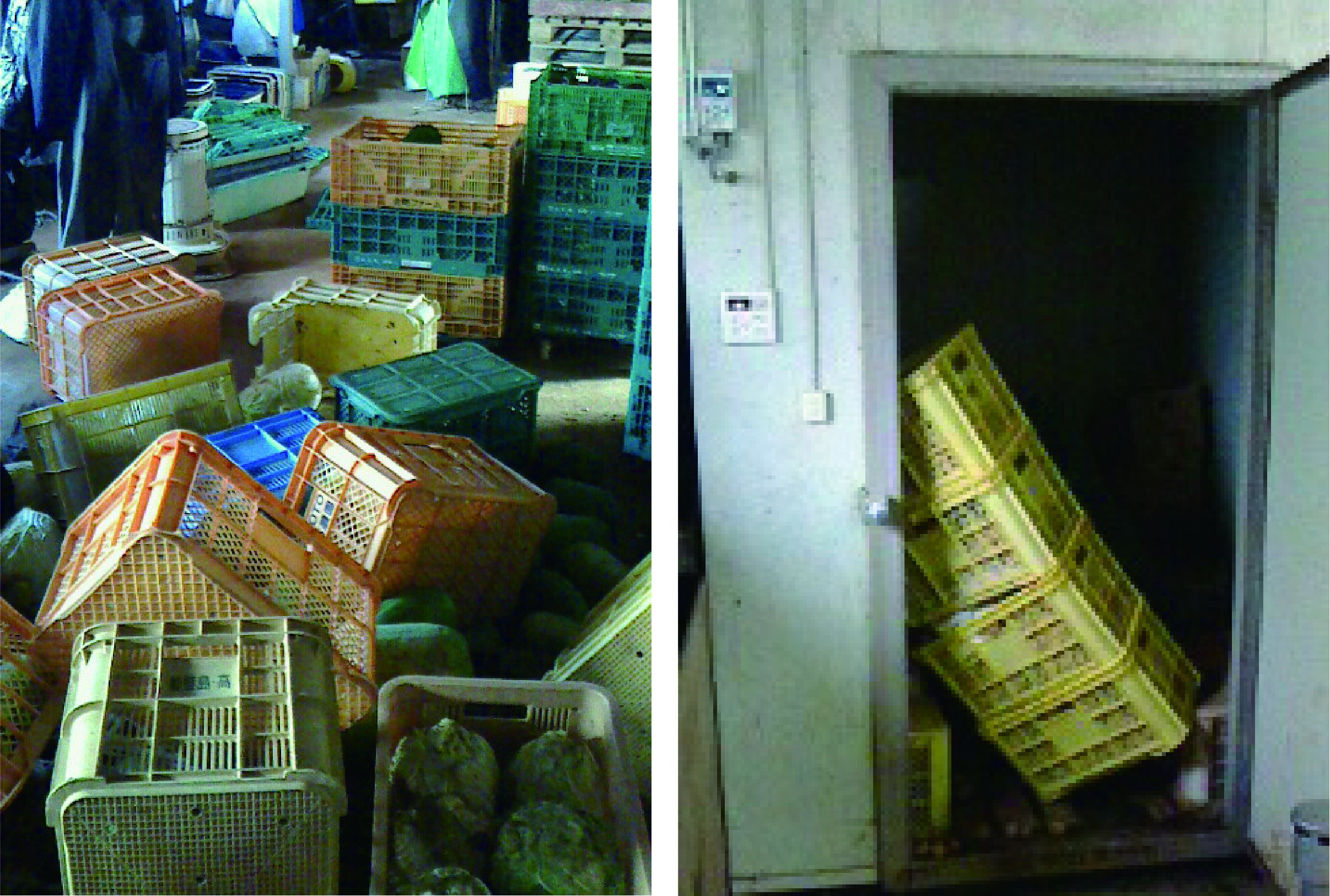 ・停電による貯蔵庫内の野菜確認し、一部廃棄、冷蔵庫故障確認
