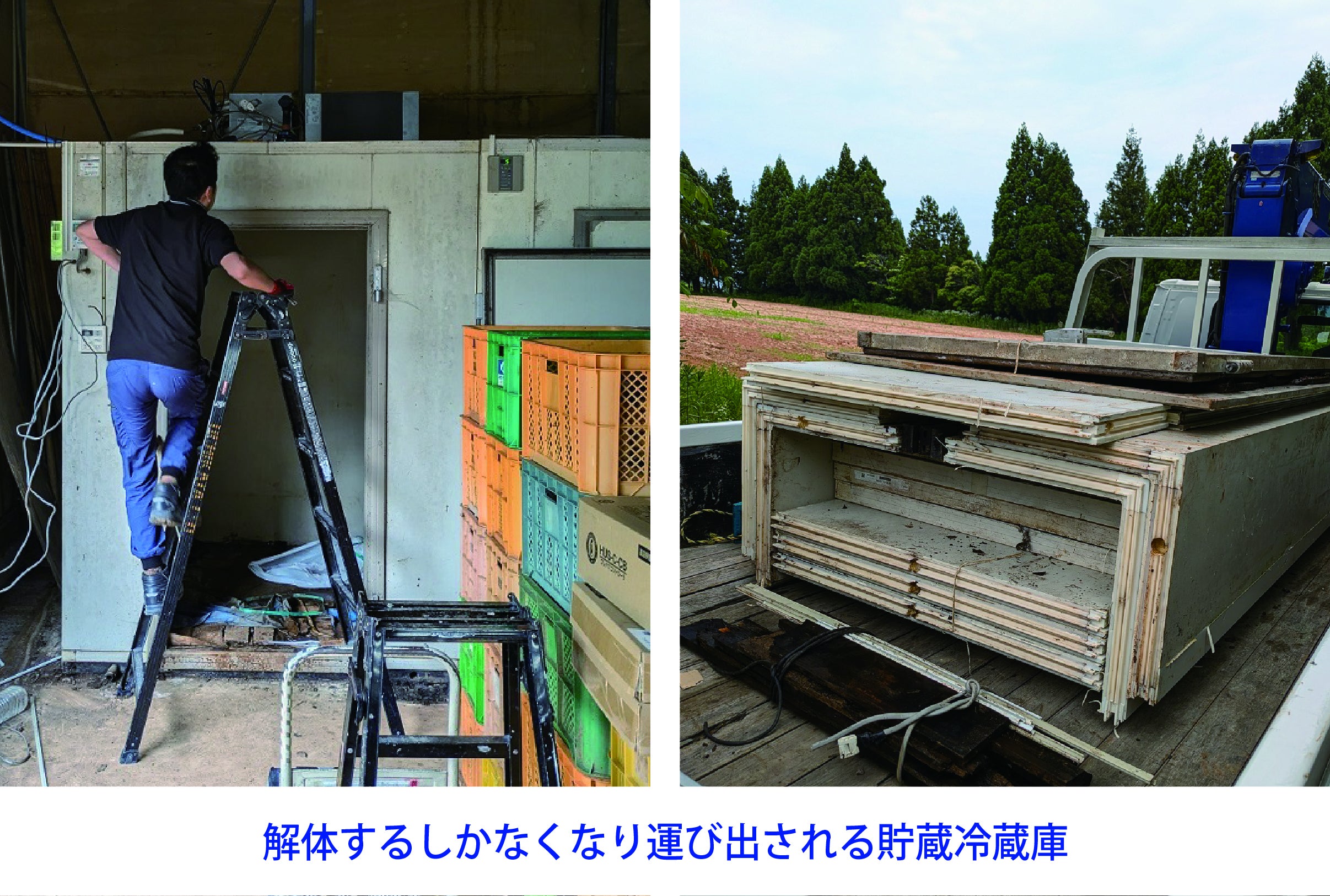 今回のプロジェクトの立ち上げに至った一番の大きな問題は野菜の貯蔵庫である冷蔵庫3機の破損と修繕です。収穫した野菜の鮮度を保つためにはこの冷蔵庫とさつまいもの貯蔵庫が不可欠です。北陸の気候から1年を通して野菜を守ってくれる大切な冷蔵庫です。1機は完全に破損しているため新しく購入予定、他2機は修繕をしなければなりません。自力ではなしえず悔しく思いますが、今育てている野菜を貯蔵するために、どうしても必要な設備です。どうかご支援をお願いいたします。
