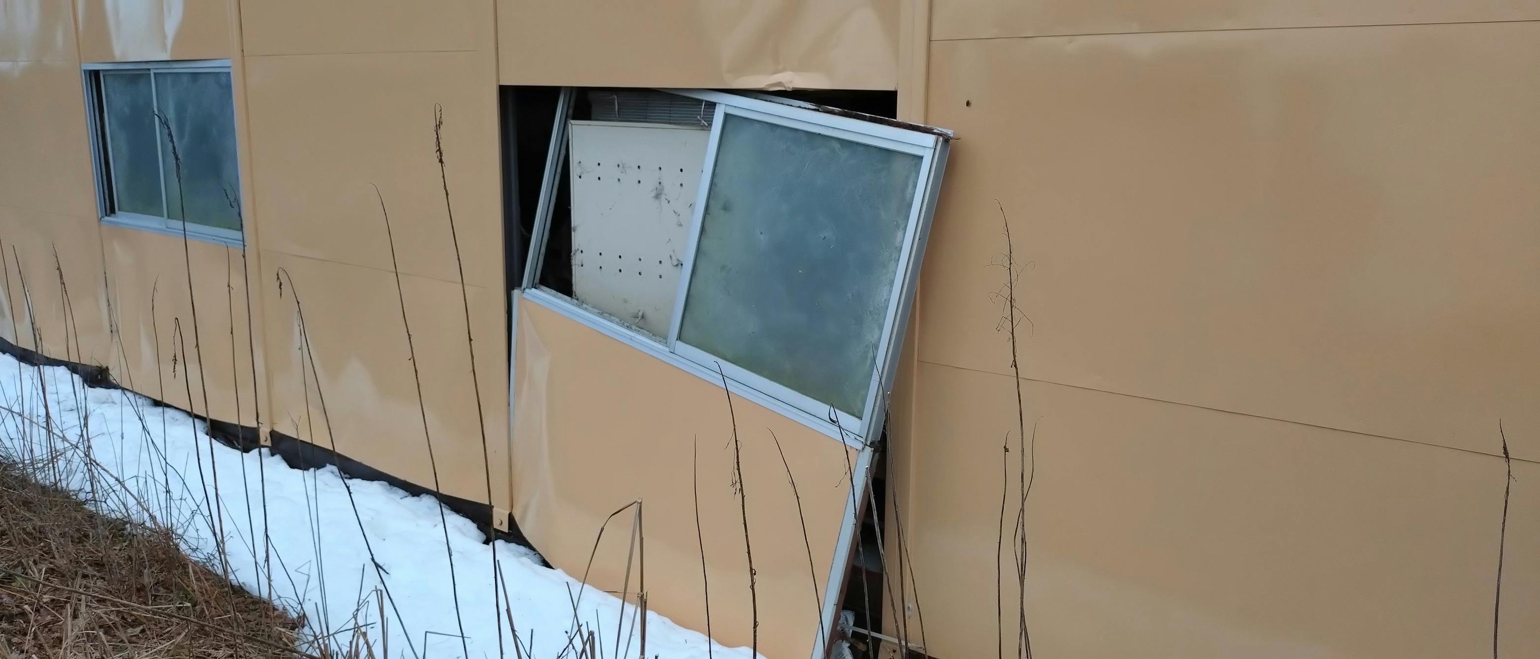 ※納屋の土台がずれ、壁が外れてしまいました。