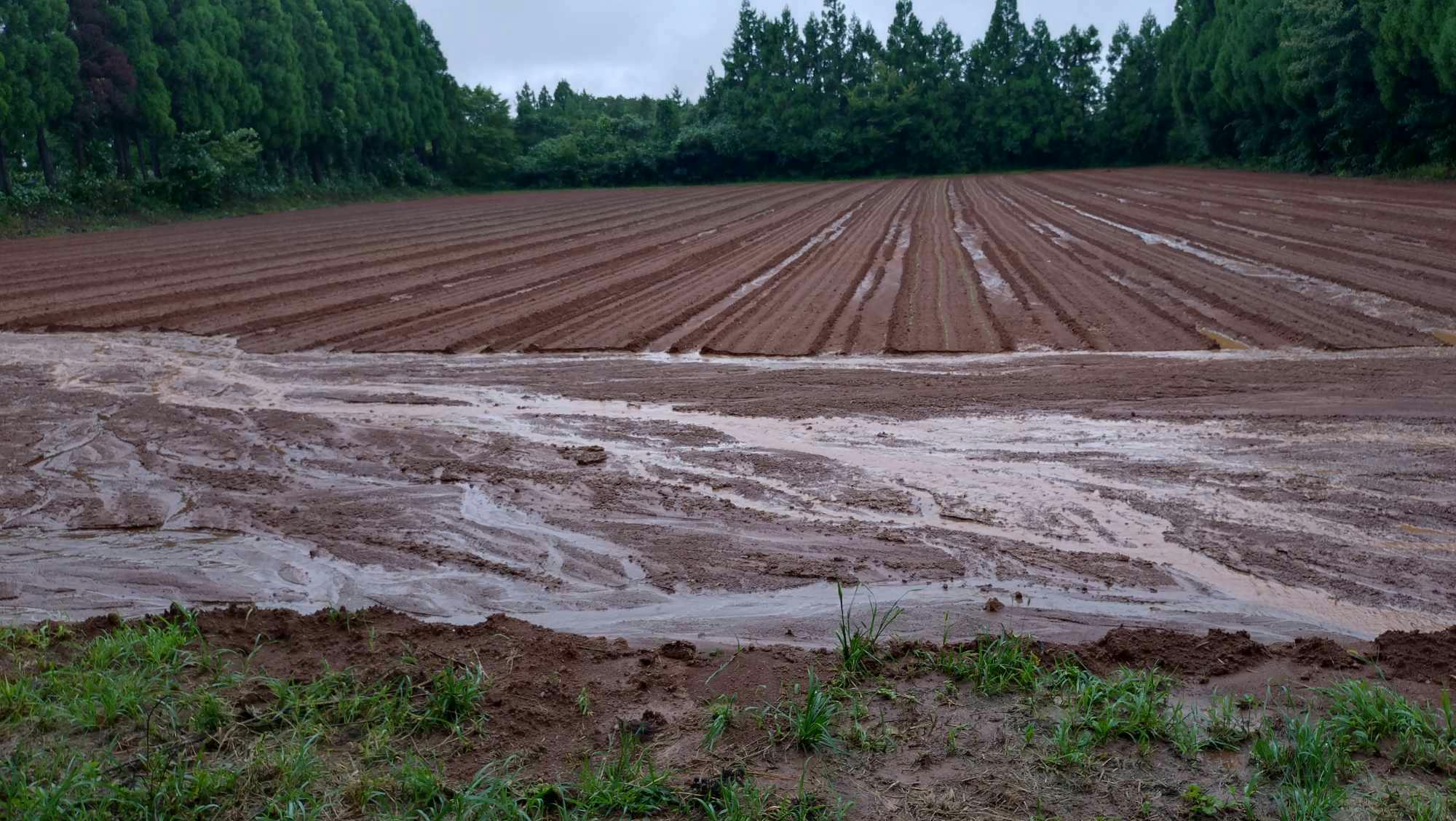 大切な畑の被害は免れず、大量の雨水で変わり果て川のように芽が出た野菜が流されていました。