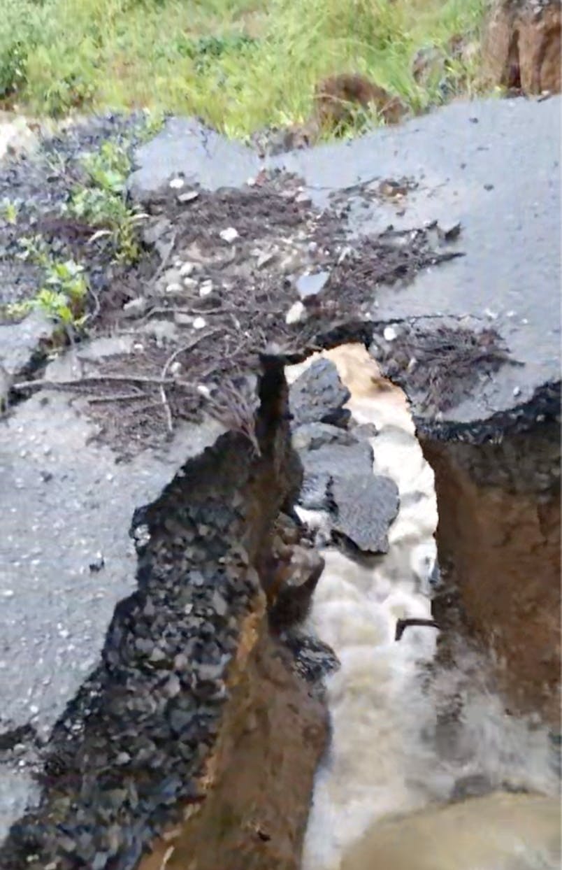 畑へ通じる道路は滝のようになり、道路が陥没して流されてしまいました。