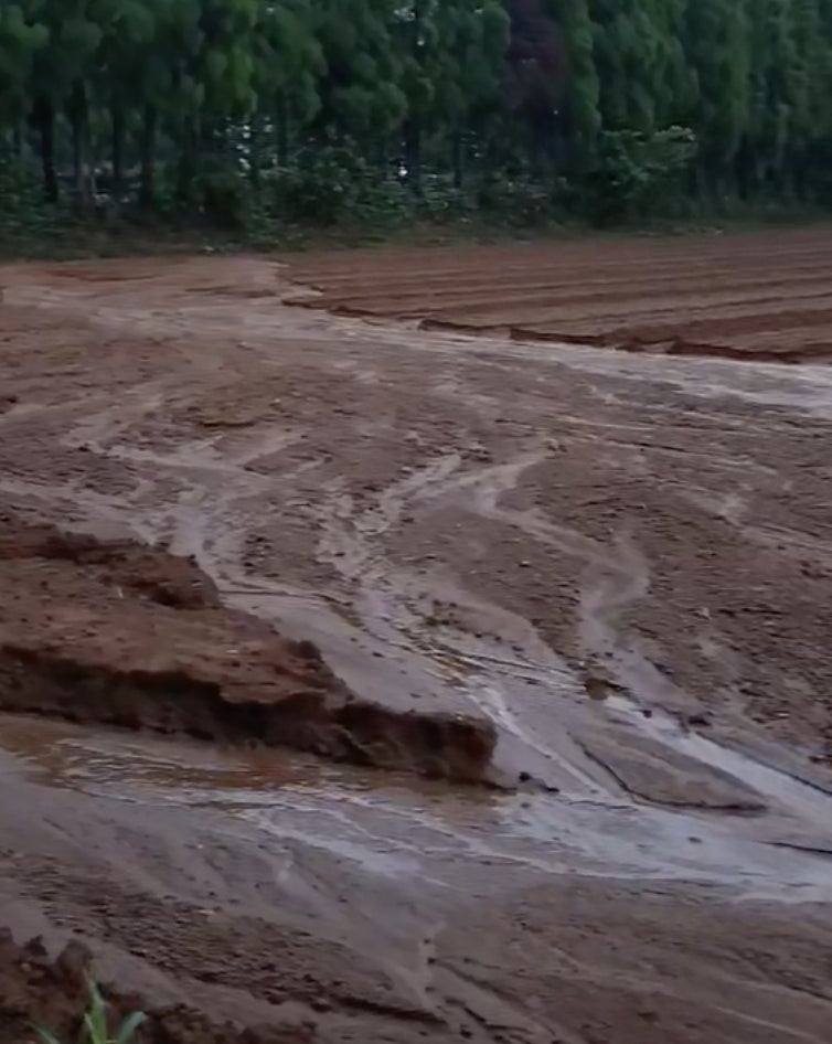 【畑に川が出来たように一部の畑が崩れ流されていきます】ニュースで奥能登の被害の大きさを目の当たりにして、私達が凹んでいる場合じゃないと、水を引くのを待って復旧を目指します。