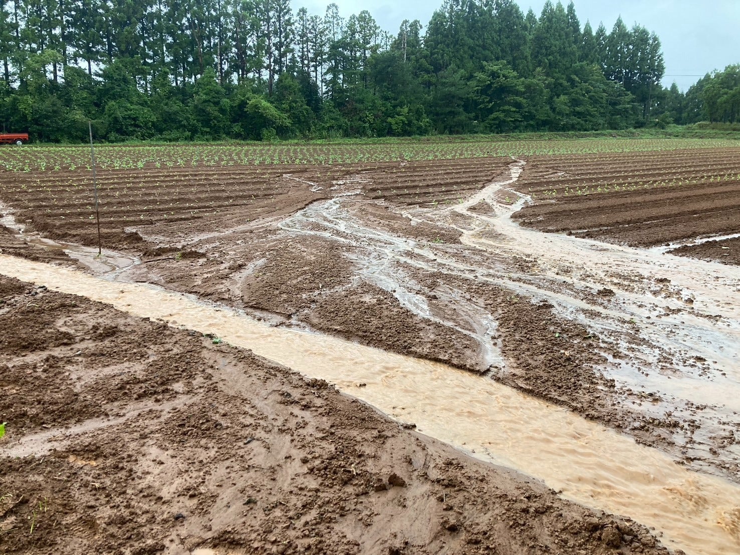 祈るように一晩過ごして、今朝の畑の見回りをしたらで、土と一緒に流されてしまった芽がでたばかりの畑の惨状に、唖然としました。