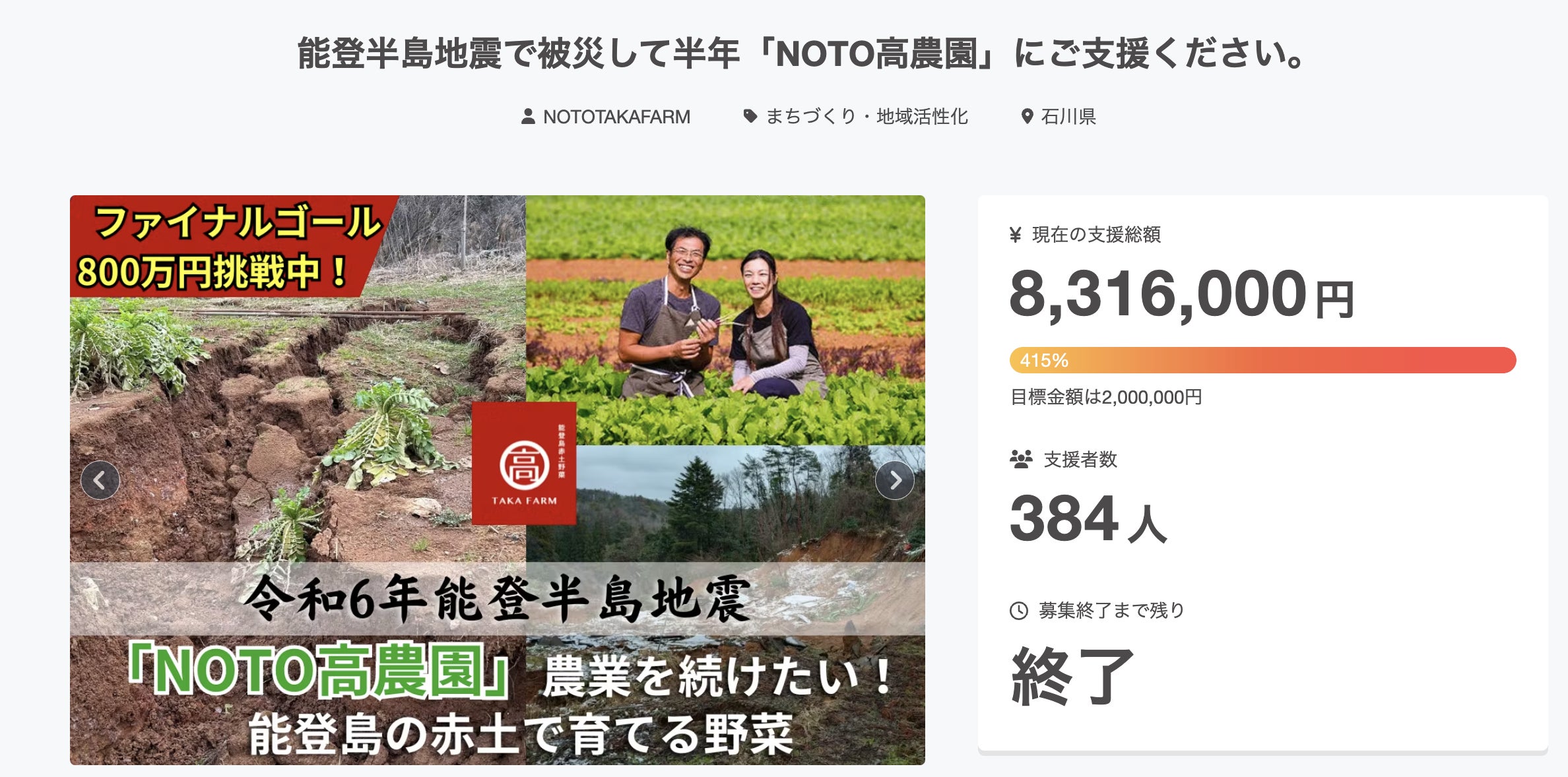 取り急ぎ、クラウドファンティング完了まで多くの応援とご支援に感謝申し上げます。どうぞ今後とも能登の復興まで温かい応援のお心をお寄せください。ありがとうございました。