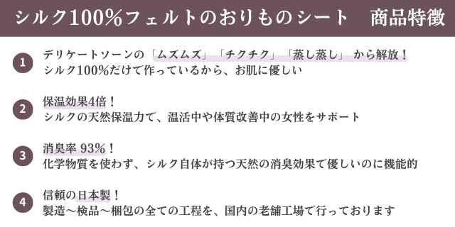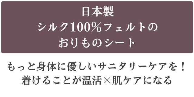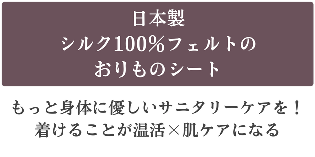 『シルク100%フェルトのおりものシート』は、デリケートな部分を護るため、シルクのみで作られています。