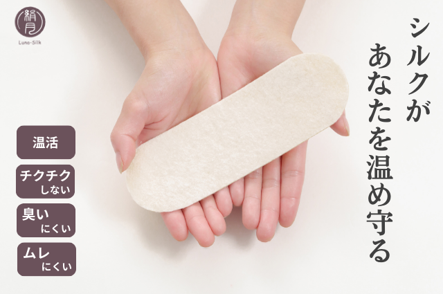 「手軽に毎日続けられる、温めと肌への優しさは妥協しない!」ことを目標に、シルクだけを使用したおりものシートを開発しました。