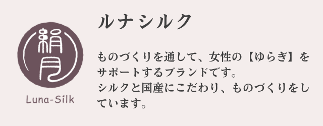私たちルナシルクは、ものづくりを通して、女性特有の【ゆらぎ】をサポートすることを目標に掲げた、シルク素材と日本生産にこだわった商品を企画開発するブランドです。