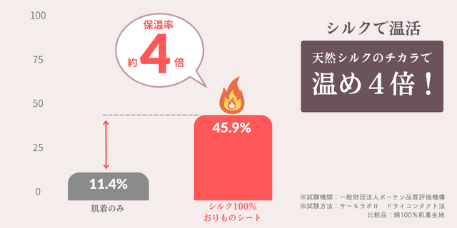 第三者試験機関の試験において、綿の下着のみの場合と比較して、約4倍もの温める効果(※1)があることが確認されました。